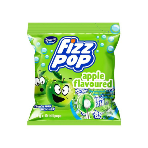 Perfect for lunch box treats or parties, Beacon Apple Flavoured Fizz Pops Lollipops taste like delicious sweet apple candy.