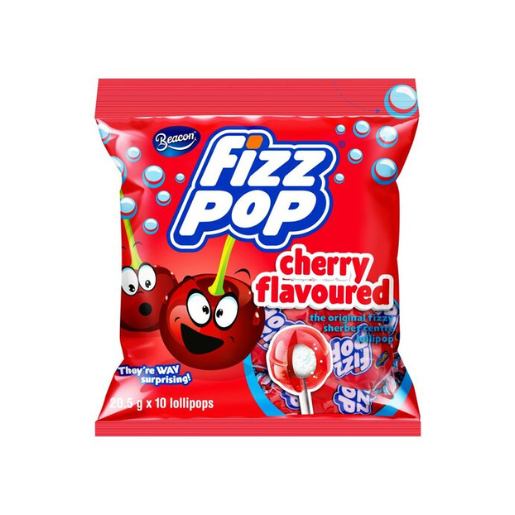 Perfect for lunch box treats or parties, Beacon Cherry Flavoured Fizz Pops Lollipops taste like delicious sweet apple candy.