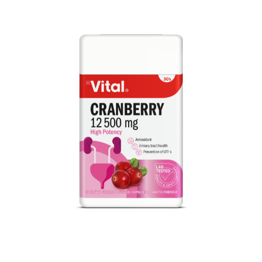 Vital Cranberry contains cranberry (Vaccinium macrocarpon Aiton) fruit extract traditionally used to support urinary tract health and may assist in preventing the occurrence and recurrence of urinary tract infections.